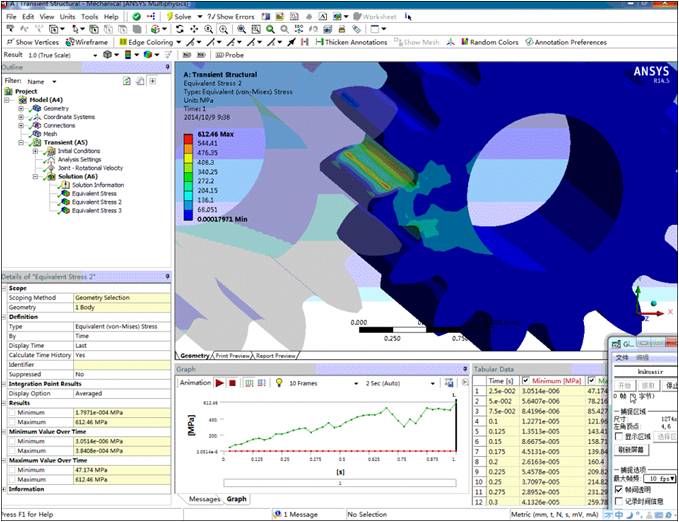 软件齿轮和齿轮箱设计阶段,采用运动学仿真对齿轮副运动的平稳性和局部干涉进行验证。同时,采用有限元分析技术,对齿轮的强度进行校核。