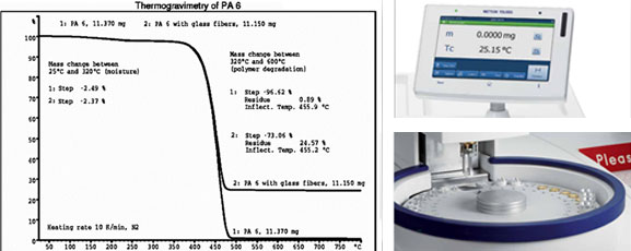 热重分析仪是一种利用热重法检测物质温度与质量变化关系的仪器。在加热过程 (塑料800℃、金属粉末1200 ℃)中有升华、汽化、分解出气体或失去结晶水时,被测的物件质量就会发生变化,这时热重曲线就有所下降。通过分析热重曲线,主要用于聚合物(热塑性塑料、热固性树脂、弹性体、粘合剂和复合材料)及金属粉末冶金的材料的测试。